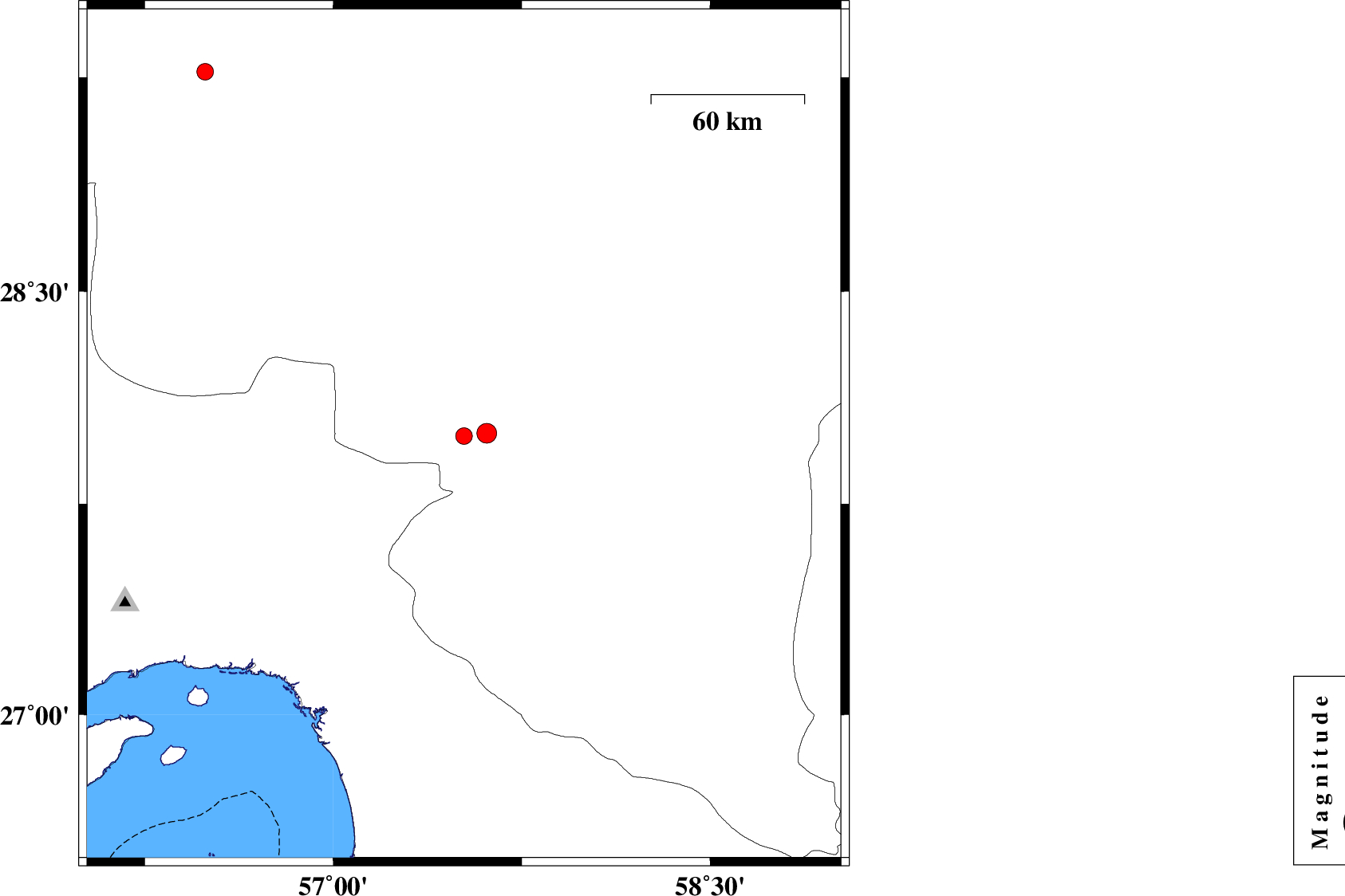 2008/02/15 21:35:07.3 01:05:07.3 27.9957.5218 ML:2.9 18 km West of Kahnuj, Kerman Province