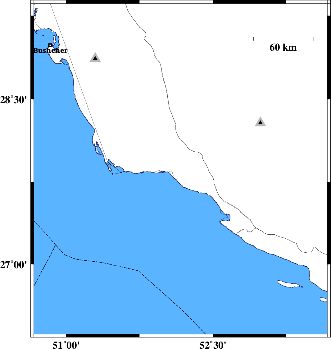 | 2008/03/07 | 20:27:00.5 | 23:57:00.5 | 27.86 | 52.17 | 19 | ML:3.2 | 11 km East of Bandar-e kangan, Bushehr Province | ||