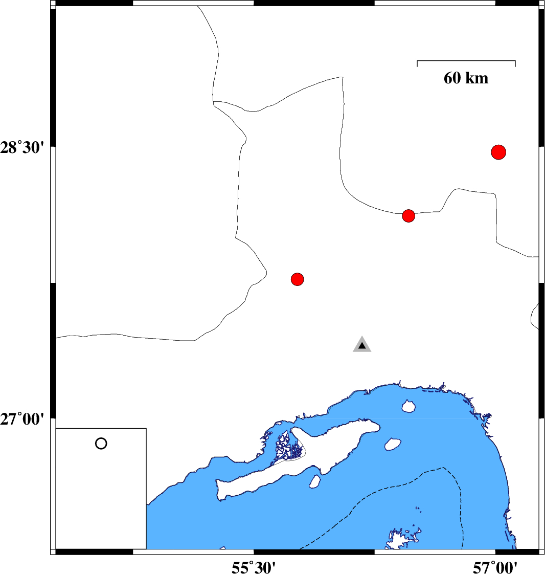 | 2008/03/26 | 07:09:39.1 | 11:39:39.1 | 27.77 | 55.77 | 14 | ML:3.5 | 61 km South-West of Hajiabad, Hormozgan Province | ||