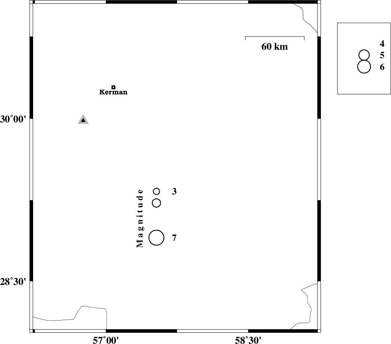 2008/03/27 19:21:55.4 23:51:55.4 29.5557.7314 ML:3.2 78 km North-West of Bam, Kerman Province
