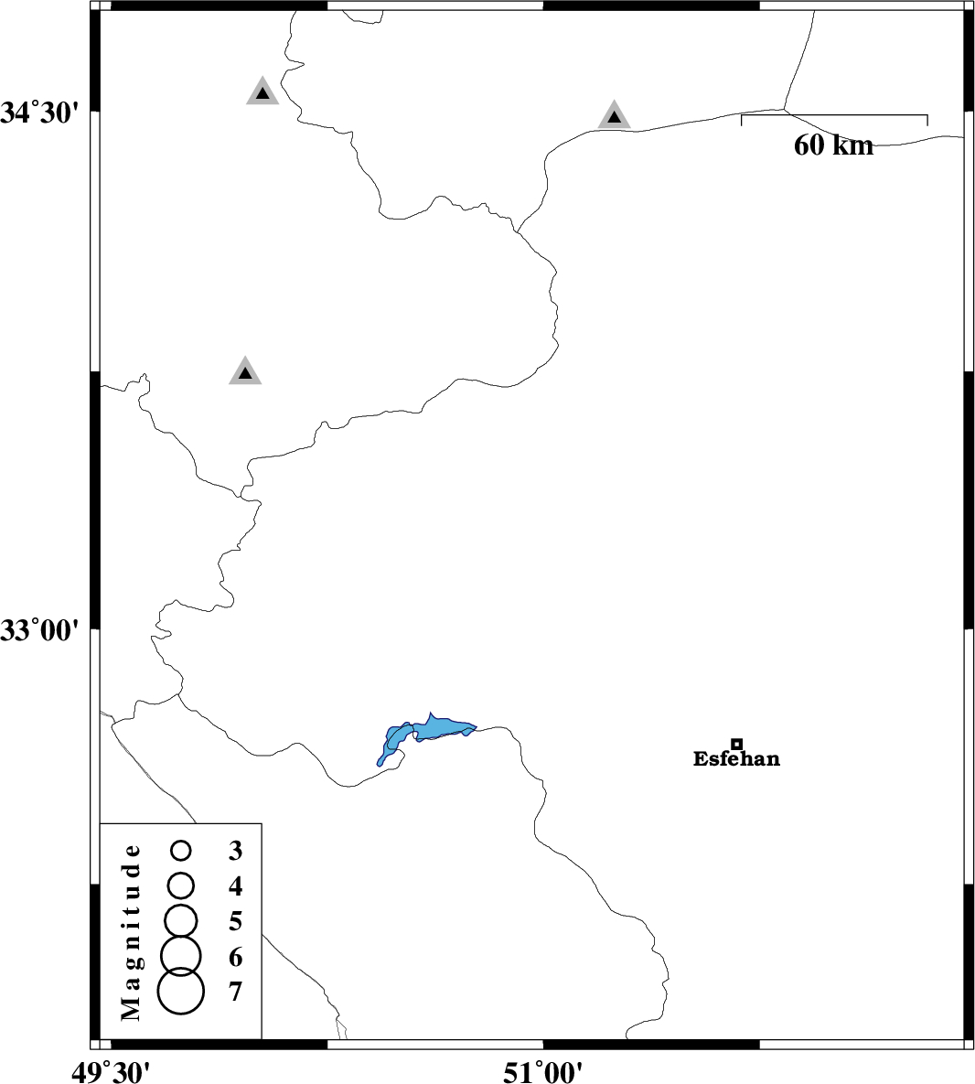 | 2008/04/21 | 01:52:12.4 | 06:22:12.4 | 33.29 | 50.96 | 14 | ML:3.4 | 60 km East of Khvansar, Esfahan Province |