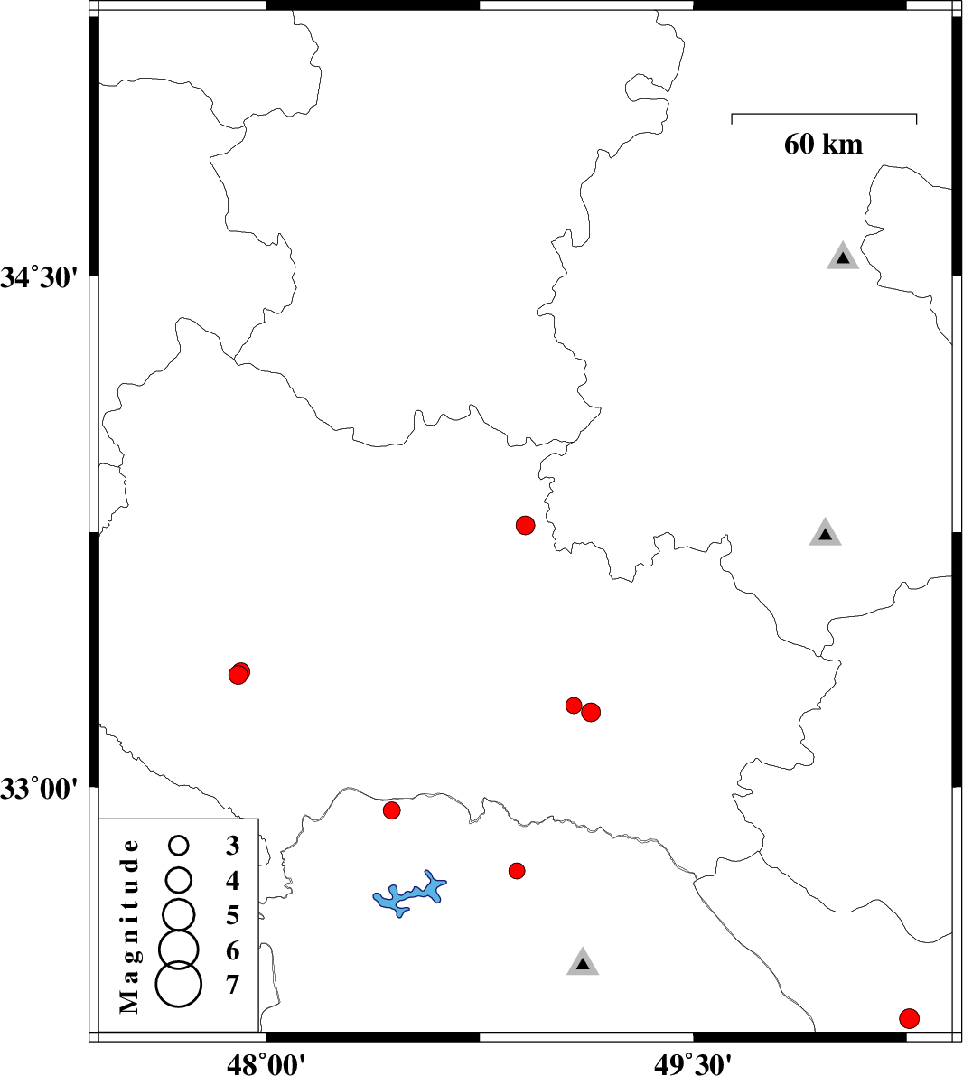| 2008/04/15 | 13:43:01.4 | 18:13:01.4 | 33.34 | 47.91 | 16 | ML:2.8 | 27 km North-East of Pol-e dokhtar, Lorestan Province | ||