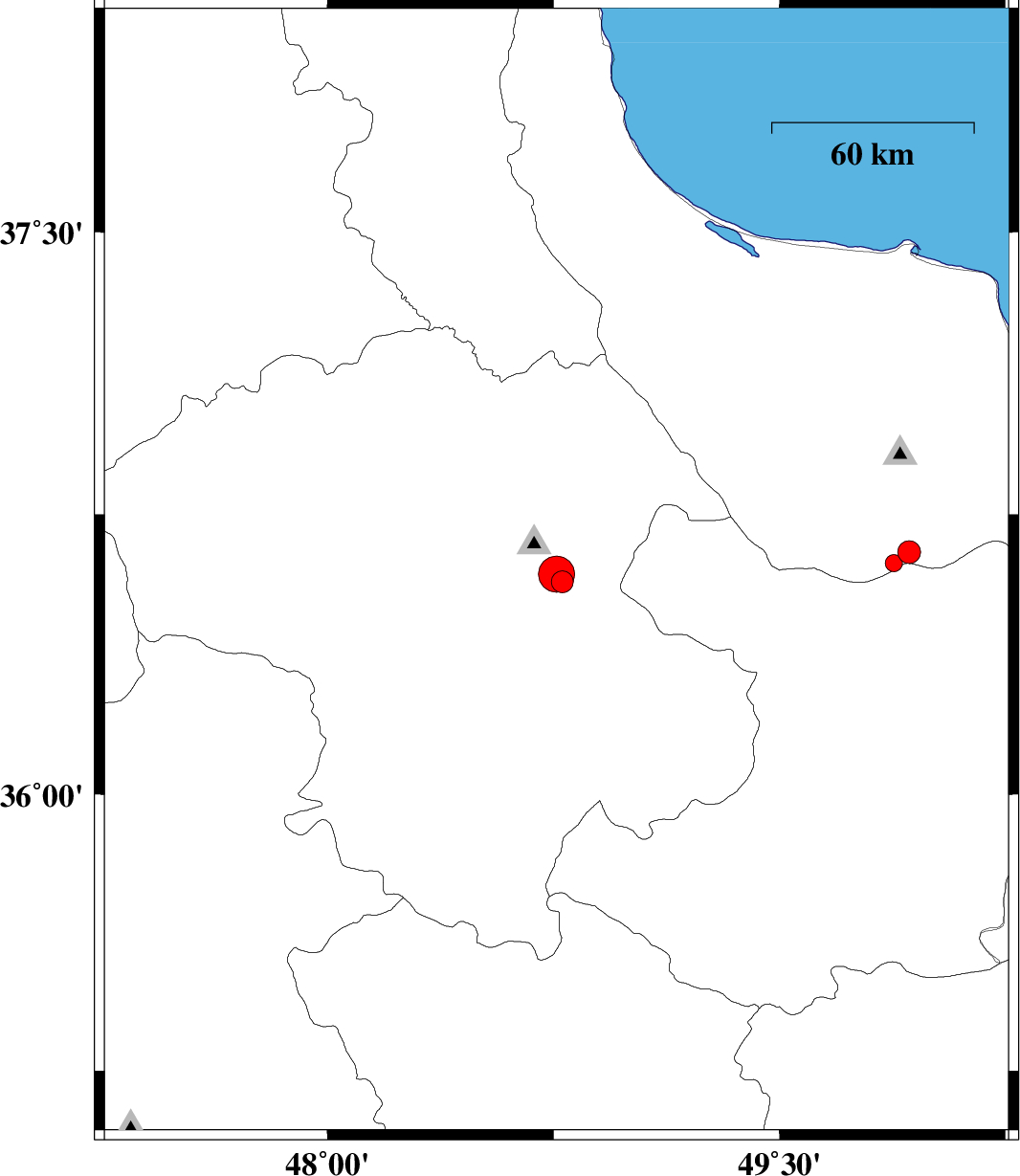 | 2008/05/27 | 23:56:51.2 | 04:26:51.2 | 36.57 | 48.78 | 18 | ML:3.2 | 28 km South-East of Zanjan, Zanjan Province | ||