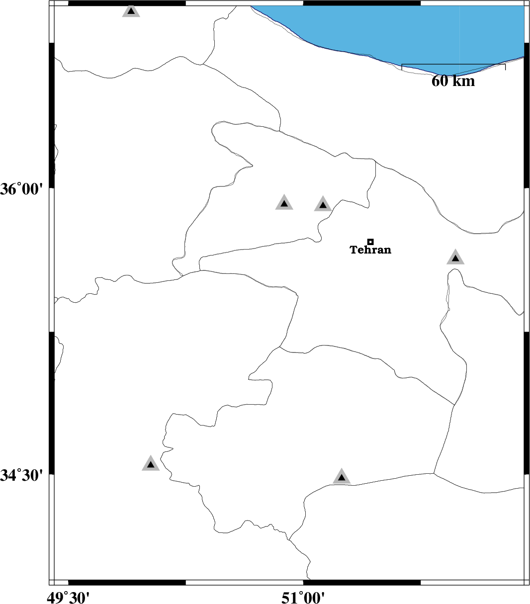 | 2008/05/31 | 04:42:19.3 | 09:12:19.3 | 35.44 | 50.91 | 46 | ML:2.7 | 16 km West of Robatkarim, Tehran Province | ||