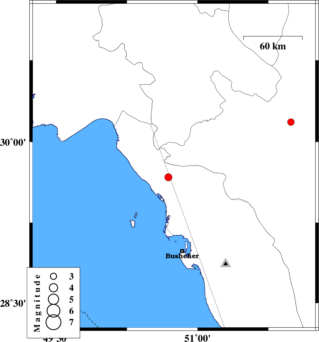 | 2008/06/01 | 05:05:56.4 | 09:35:56.4 | 29.77 | 50.75 | 12 | ML:3.5 | 31 km North-East of Bandar-e genaveh, Bushehr Province | ||