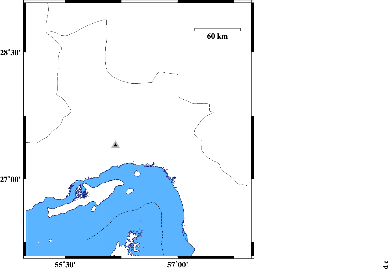 | 2008/06/23 | 22:16:14.6 | 02:46:14.6 | 27.58 | 56.48 | 14 | ML:3.3 | 48 km North-East of Bandar-e abbas, Hormozgan Province | ||