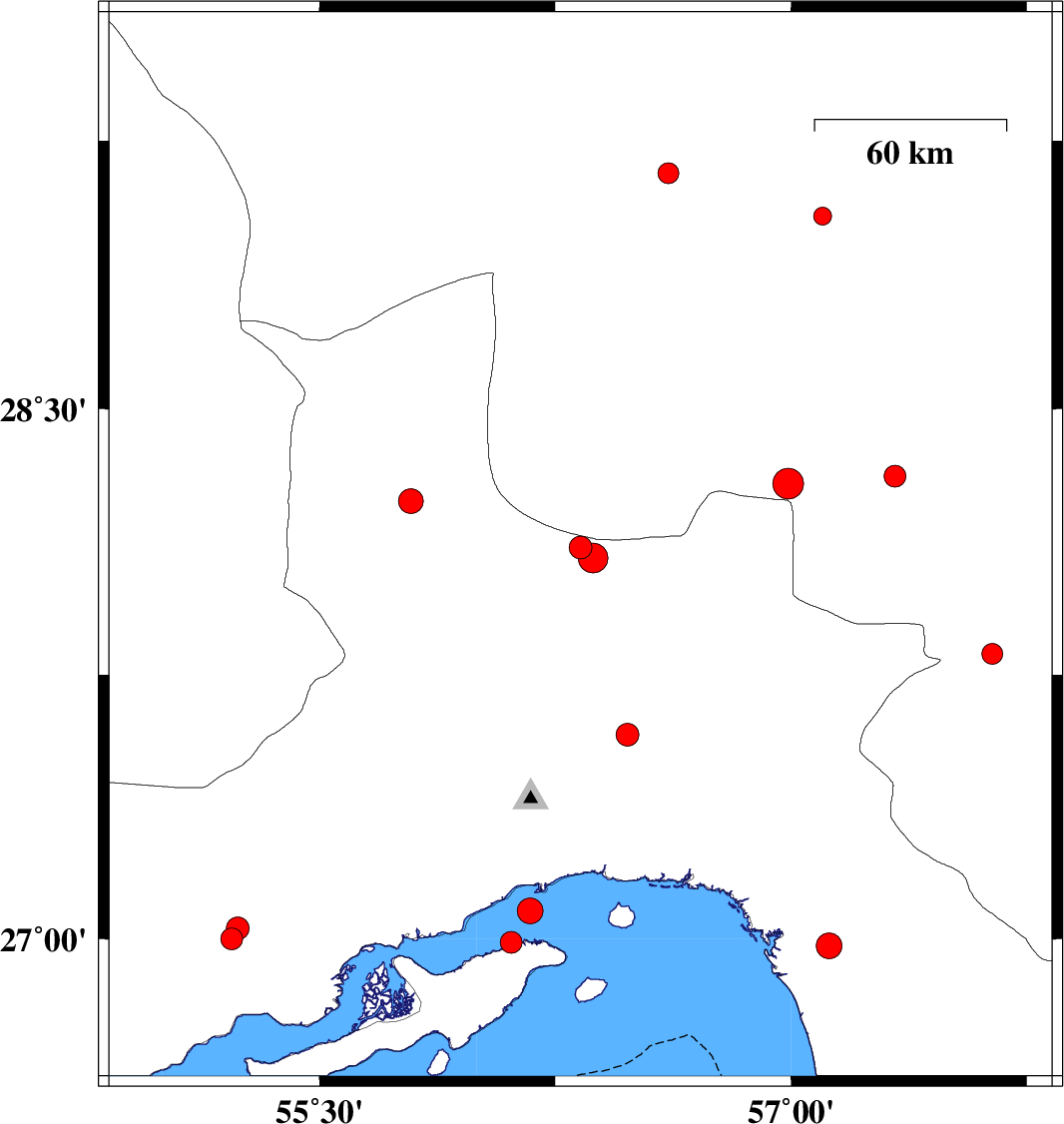 2008/06/23 22:16:14.6 02:46:14.6 27.5856.4814 ML:3.3 48 km North-East of Bandar-e abbas, Hormozgan Province