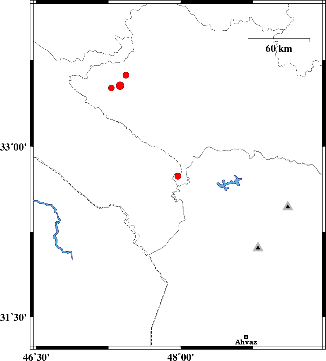 | 2008/07/20 | 02:20:19.8 | 06:50:19.8 | 32.74 | 47.97 | 46 | ML:2.9 | 47 km North-West of Andimeshk, Khoozestan Province | ||