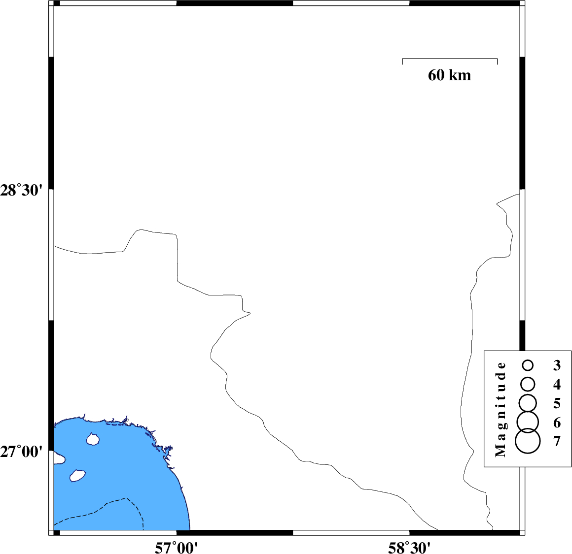 | 2008/08/11 | 20:09:01.0 | 00:39:01.0 | 27.85 | 56.62 | 16 | ML:4 | 77 km North-West of Dehbarez, Hormozgan Province | ||