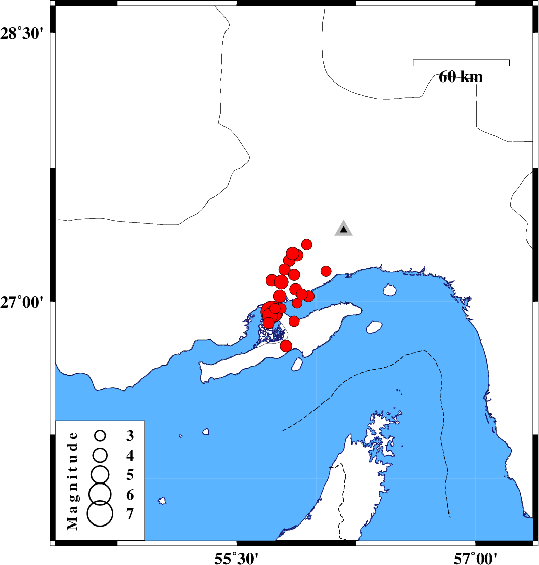 2008/09/10 12:00:21.1 16:30:21.1 27.0355.951 ML:3.3 Persian Gulf, 32 km West of Qeshm