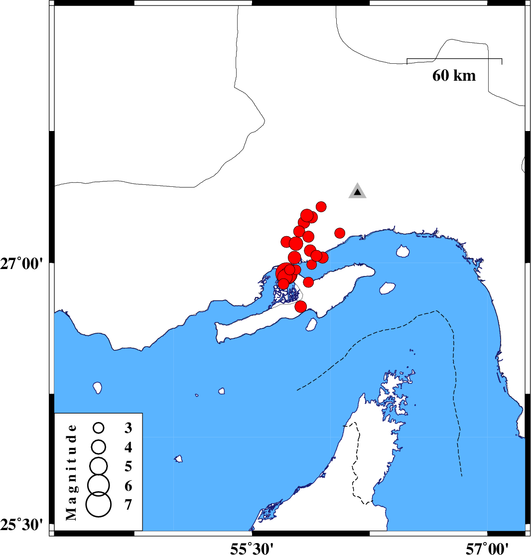 2008/09/10 12:00:21.1 16:30:21.1 27.0355.951 ML:3.3 Persian Gulf, 32 km West of Qeshm