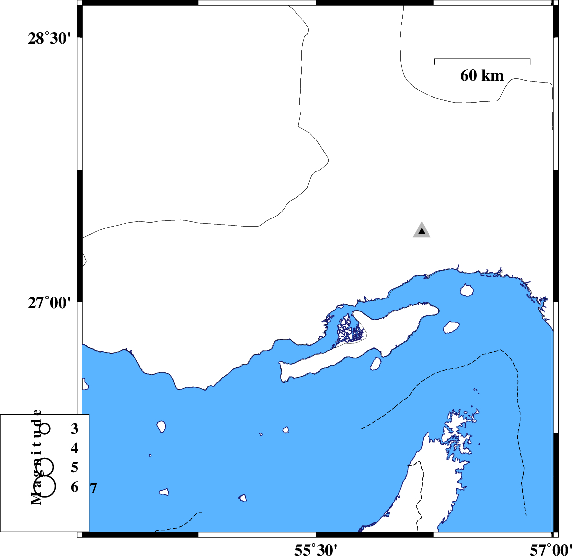 2008/09/10 12:00:21.1 16:30:21.1 27.0355.951 ML:3.3 Persian Gulf, 32 km West of Qeshm