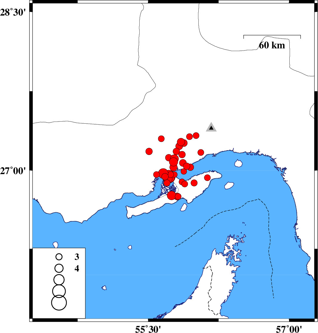 2008/09/10 12:00:21.1 16:30:21.1 27.0355.951 ML:3.3 Persian Gulf, 32 km West of Qeshm