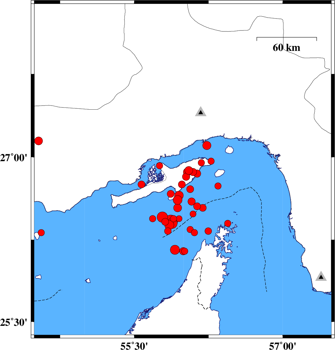 2008/09/10 11:00:35.1 15:30:35.1 26.9455.727 Mb:6.2 Persian Gulf, 54 km West of Qeshm