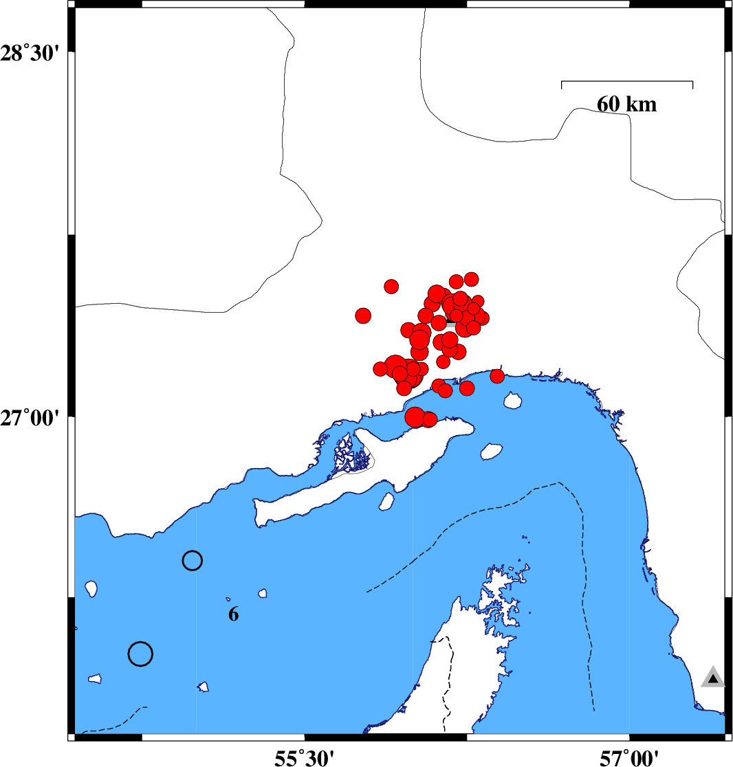 2008/09/10 11:00:35.1 15:30:35.1 26.9455.727 Mb:6.2 Persian Gulf, 54 km West of Qeshm