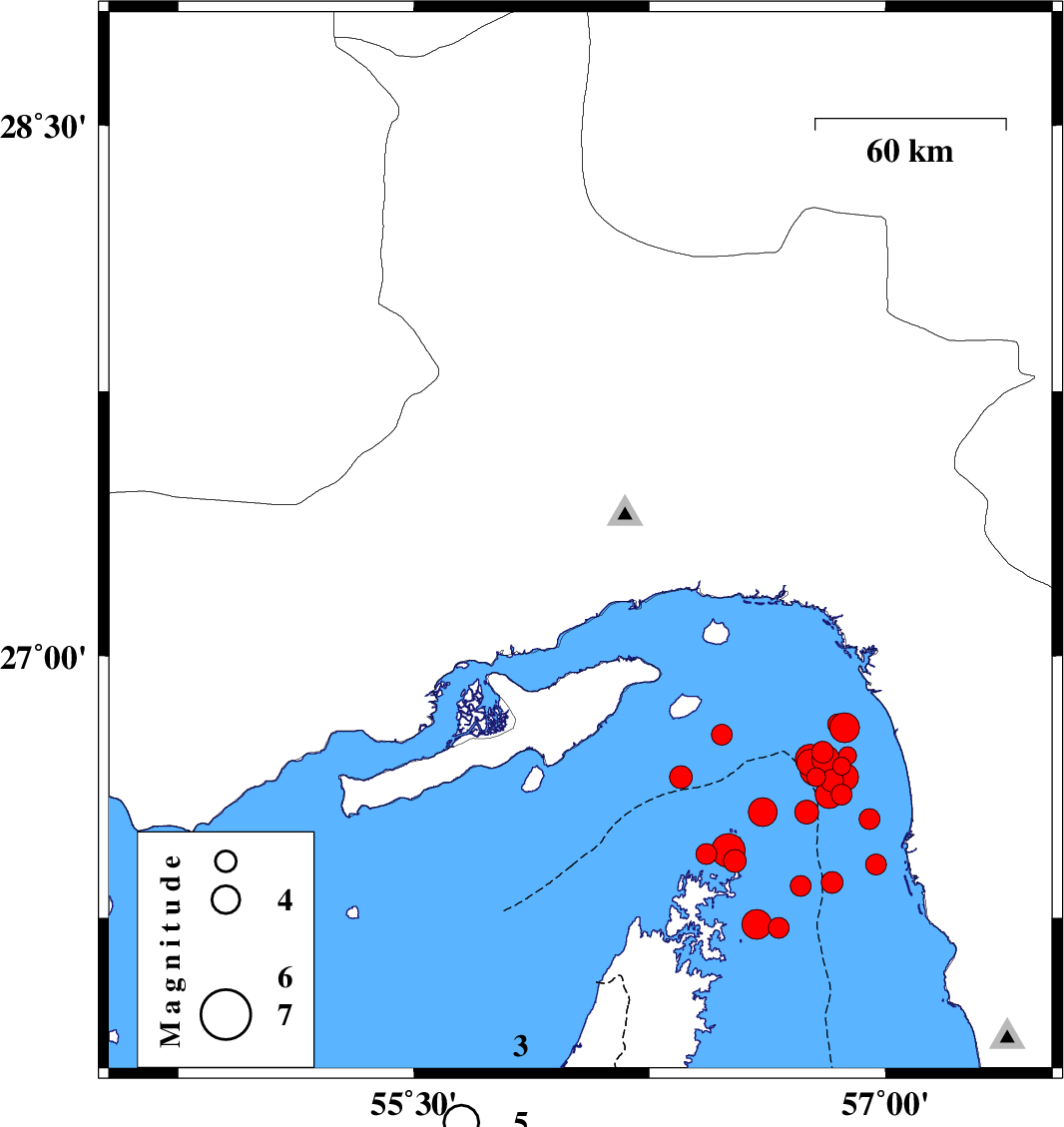 2008/09/13 21:40:44.0 02:10:44.0 26.9455.687 ML:3.3 Persian Gulf, 58 km West of Qeshm