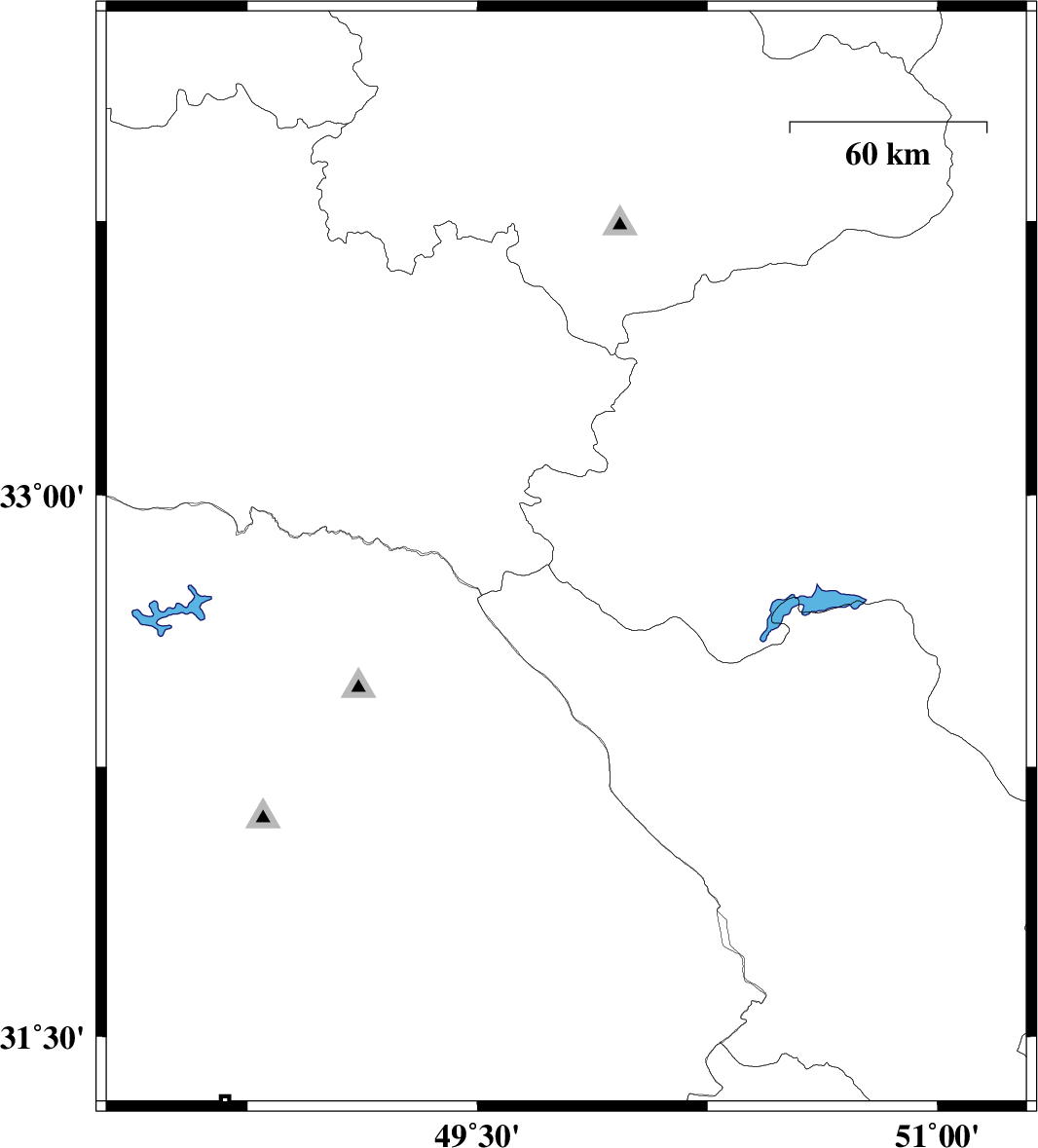 | 2008/10/12 | 18:11:38.0 | 21:41:38.0 | 32.82 | 49.79 | 15 | ML:2.9 | 33 km South-West of Fereydunshahr, Esfahan Province |