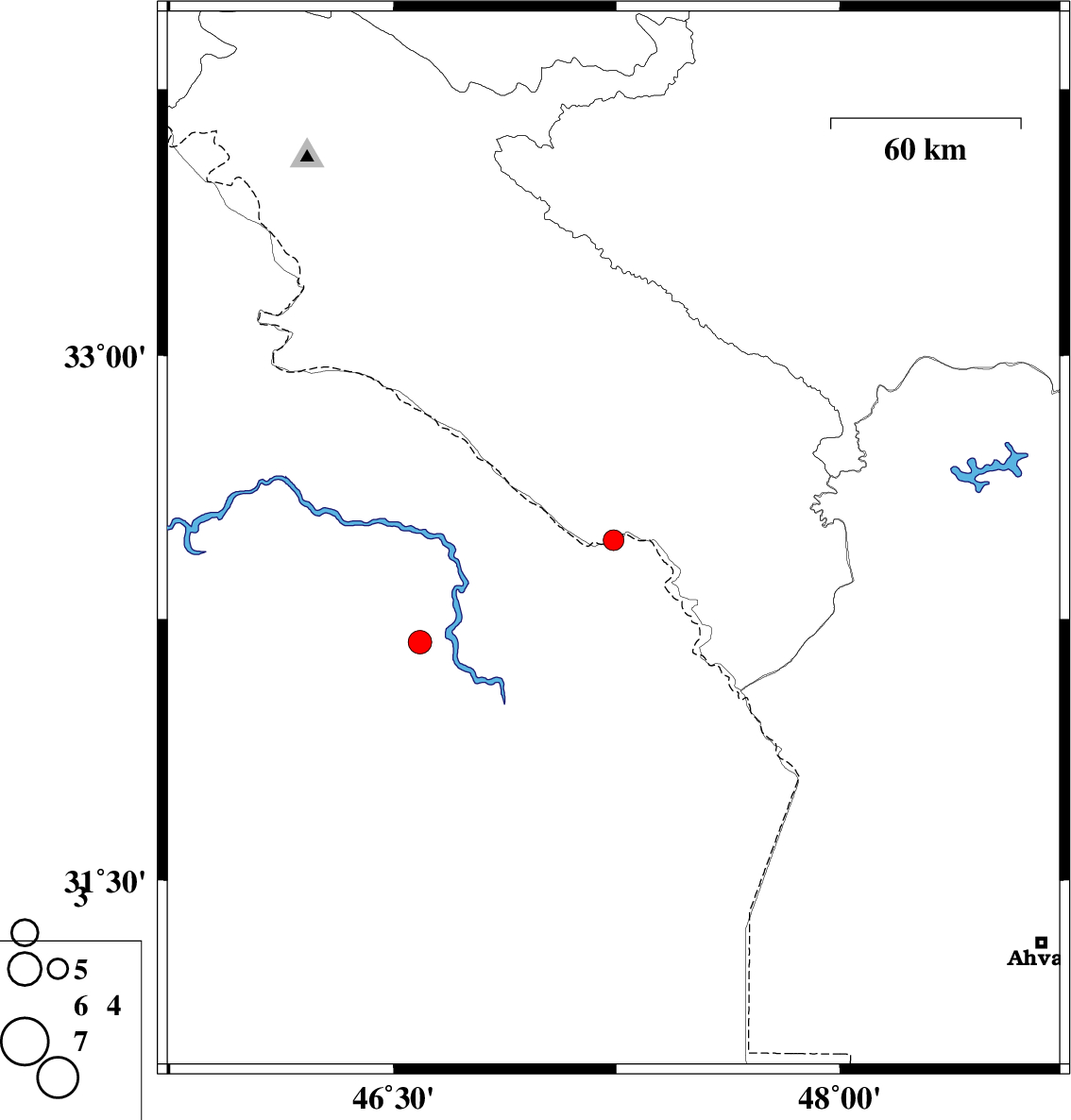 | 2008/11/07 | 08:39:25.2 | 12:09:25.2 | 32.76 | 47.89 | 14 | ML:3.1 | 44 km South-East of Abdanan, Ilam Province |