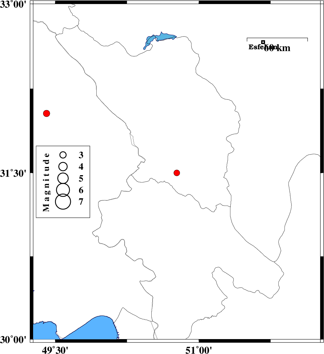 | 2008/11/13 | 02:52:05.2 | 06:22:05.2 | 31.5 | 50.77 | 36 | ML:2.8 | 3 km Lordegan, Chaharmahal Bakhtiari Province |