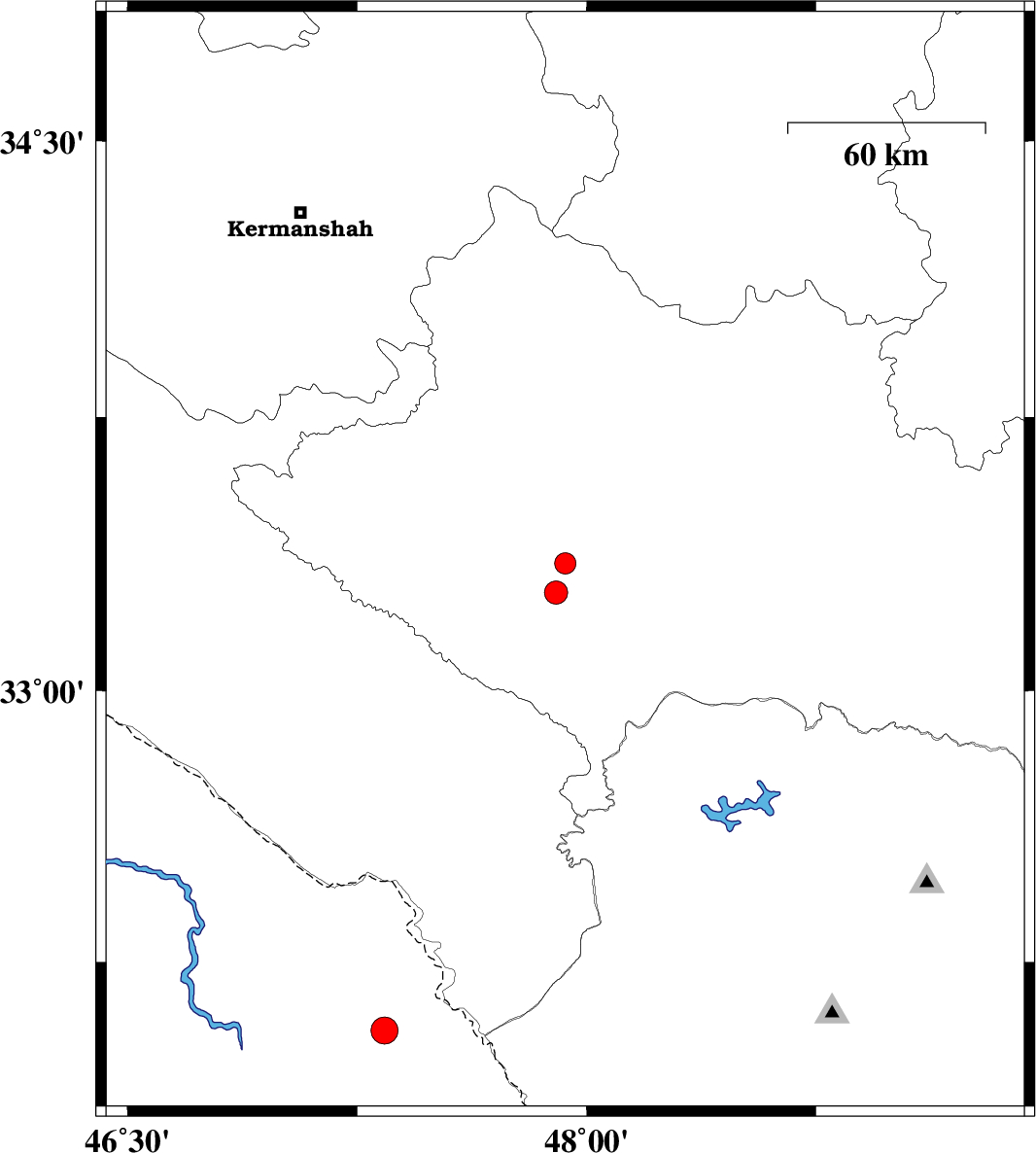 | 2008/11/23 | 06:59:52.3 | 10:29:52.3 | 33.27 | 47.9 | 37 | ML:3.4 | 21 km North-East of Pol-e dokhtar, Lorestan Province | ||