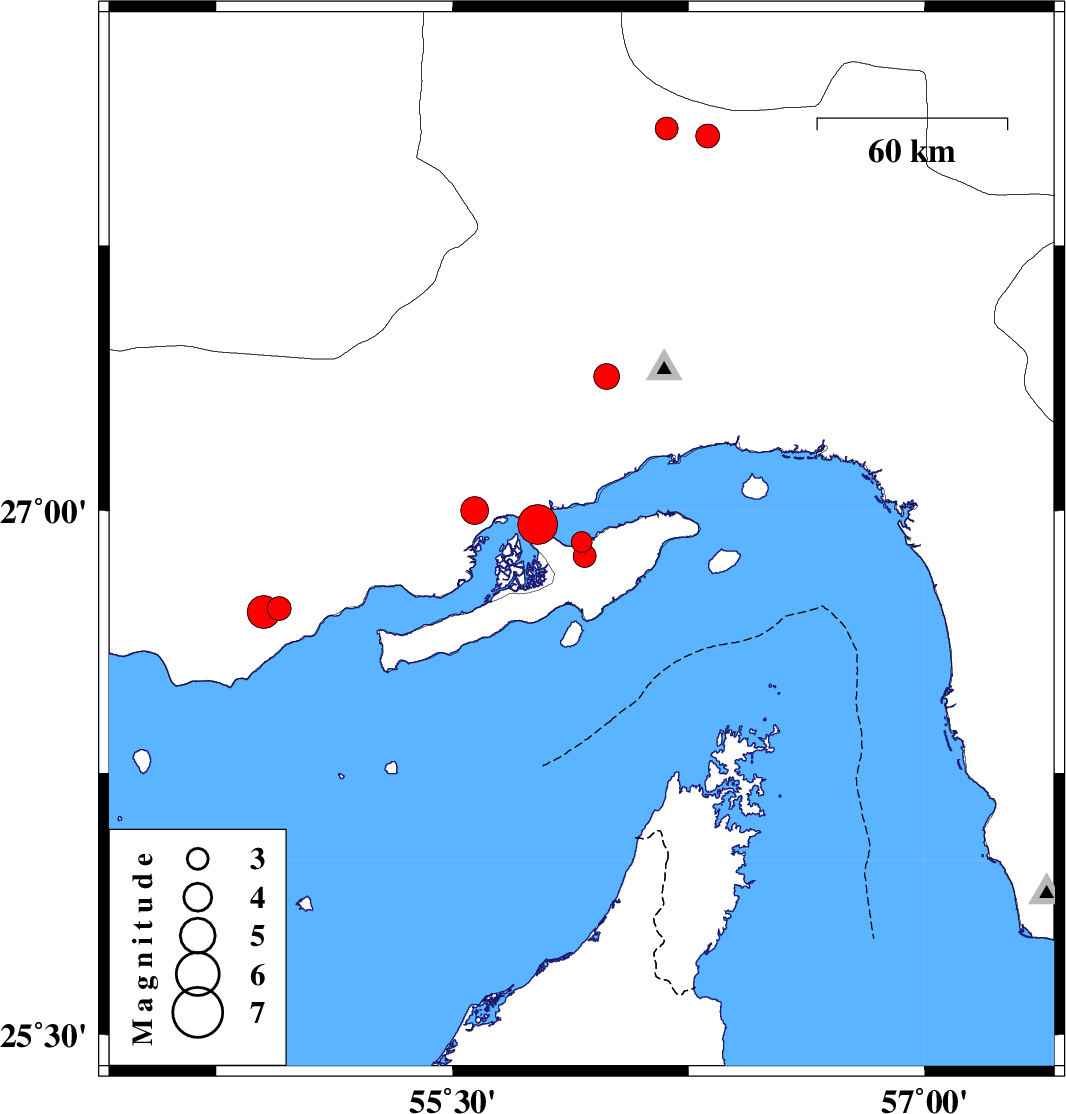 2008/11/30 13:46:15.9 17:16:15.9 2755.5718 ML:4 69 km West of Qeshm, Hormozgan Province