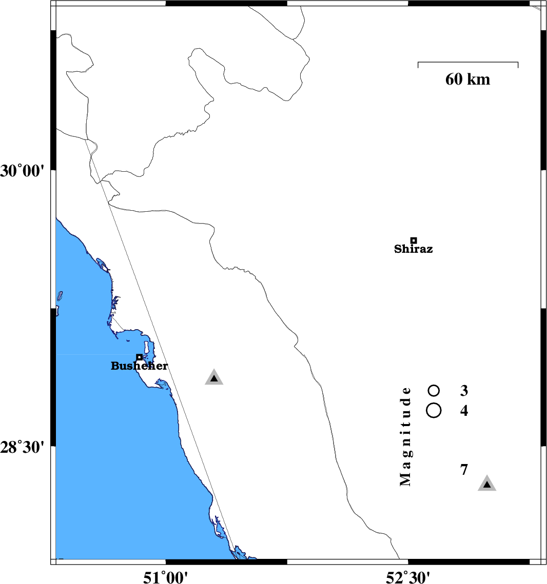 | 2009/01/29 | 23:50:32.3 | 03:20:32.3 | 29.38 | 51.82 | 18 | ML:3 | 31 km South-East of Kazerun, Fars Province | ||