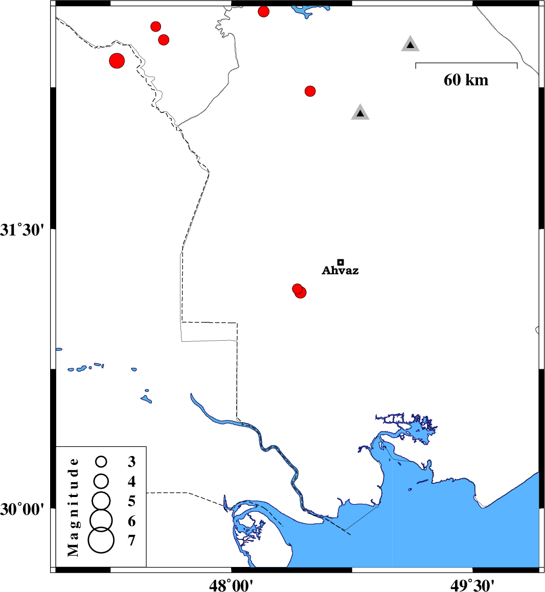 | 2009/02/10 | 15:30:25.2 | 19:00:25.2 | 31.18 | 48.41 | 14 | ML:2.8 | 30 km South-West of Ahvaz, Khoozestan Province | ||