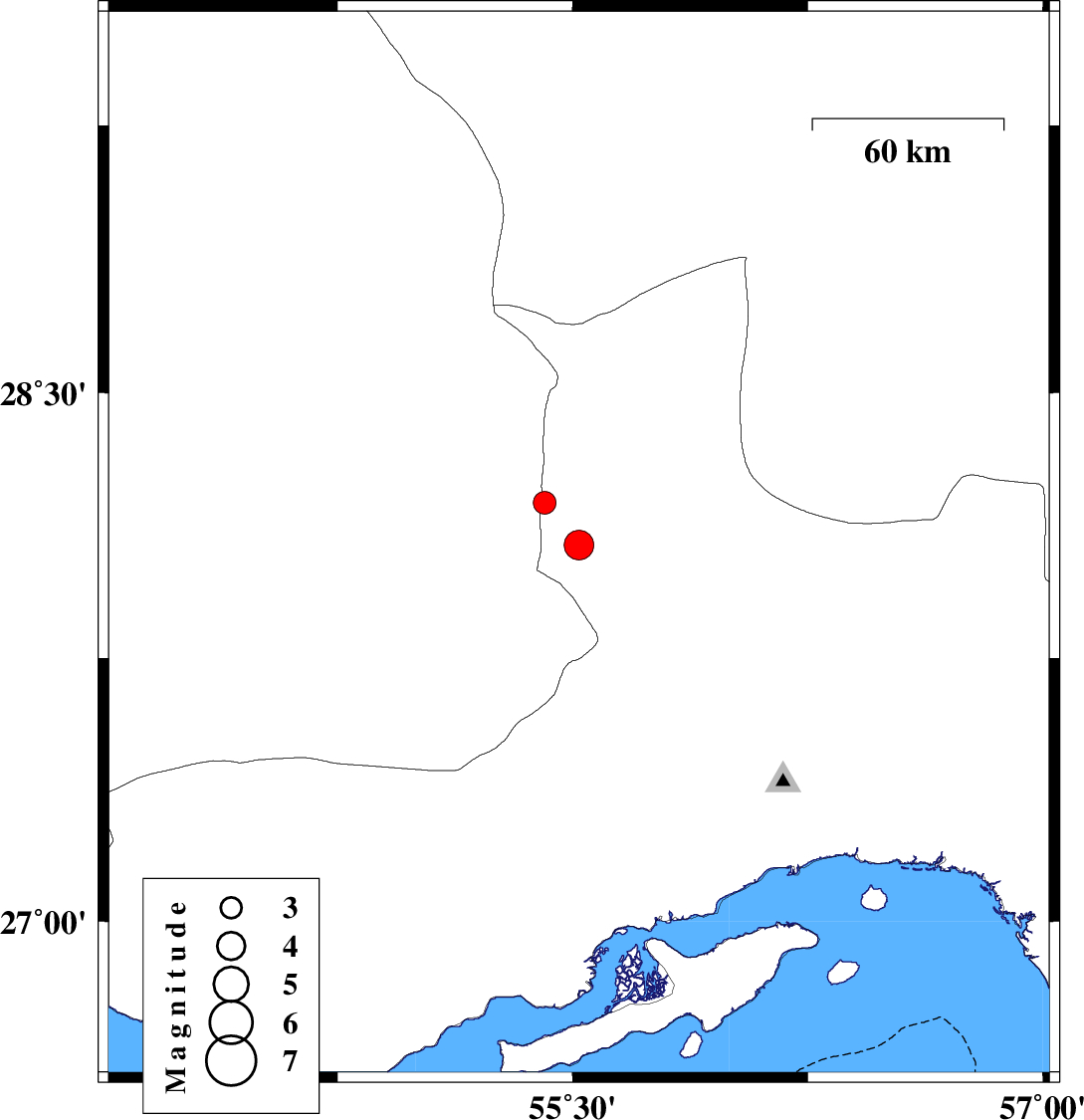 2009/02/22 20:54:01.3 00:24:01.3 28.0755.5214 ML:4.2 45 km South-West of Hajiabad, Hormozgan Province