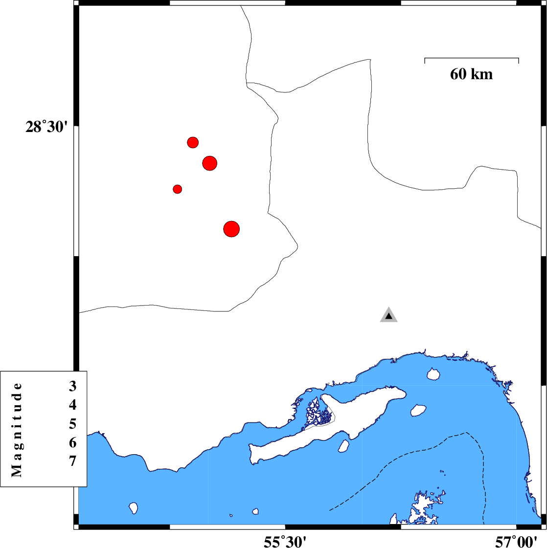 2009/02/23 11:11:00.5 14:41:00.5 27.6955.6618 ML:4.7 73 km South-West of Hajiabad, Hormozgan Province