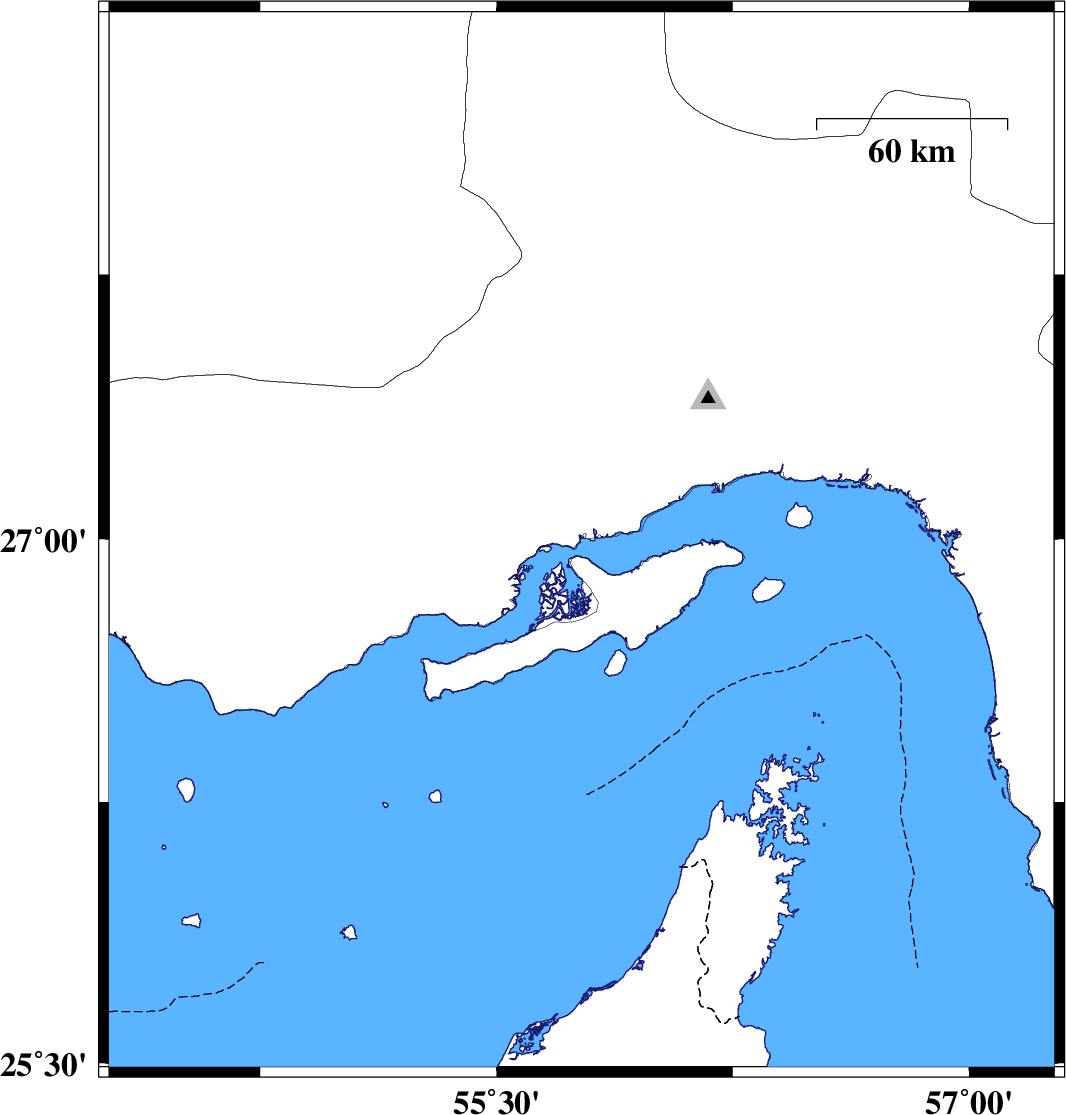 | 2009/02/25 | 01:13:17.0 | 04:43:17.0 | 26.99 | 55.77 | 8 | ML:2.8 | Persian Gulf, 49 km West of Qeshm | ||