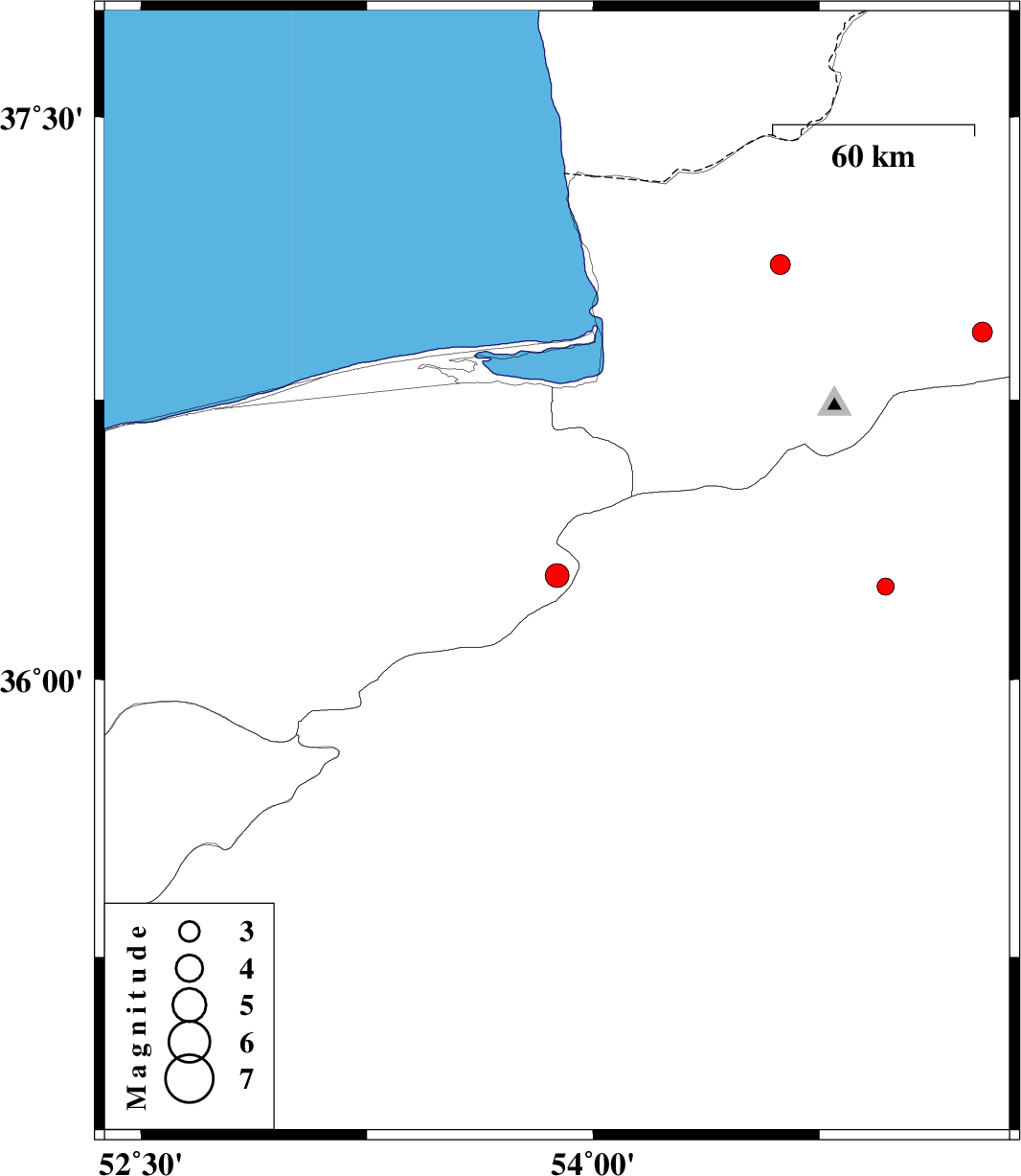 | 2009/02/22 | 08:22:52.3 | 11:52:52.3 | 36.93 | 55.29 | 14 | ML:3 | 16 km East of Ramian, Golestan Province |