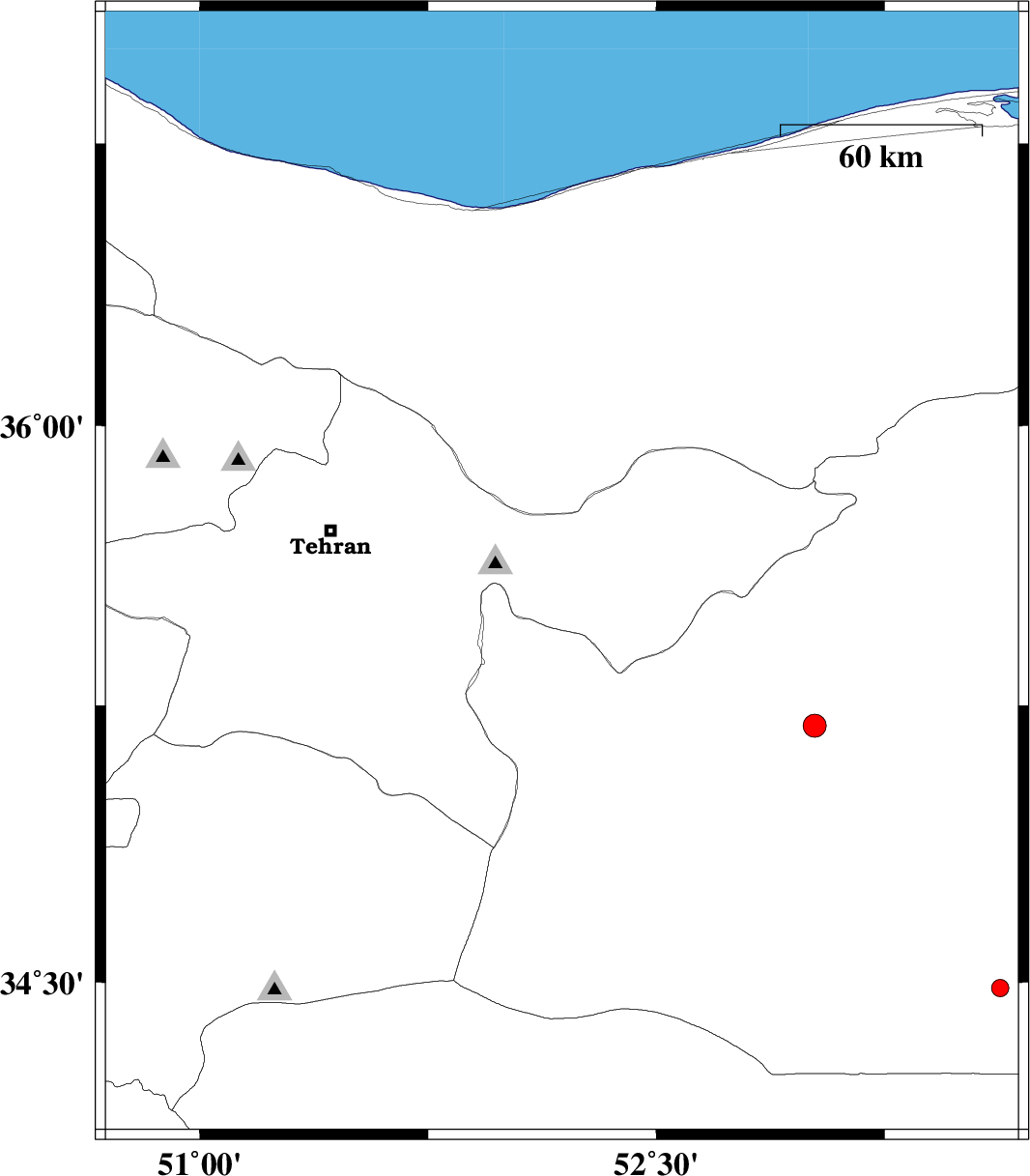 | 2009/02/26 | 08:17:22.1 | 11:47:22.1 | 34.68 | 52.05 | 18 | ML:2.5 | 65 km South-West of Garmsar, Semnan Province |