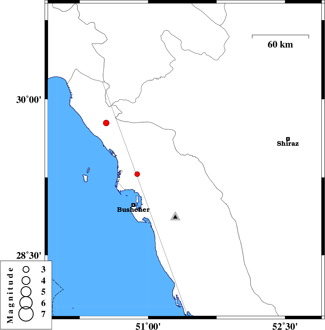 | 2009/03/20 | 23:24:10.6 | 02:54:10.6 | 29.41 | 51.4 | 18 | ML:2.6 | 25 km North-East of Borazjan, Bushehr Province | ||