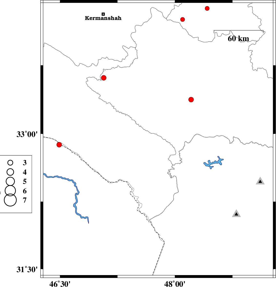 | 2009/03/21 | 21:13:01.0 | 01:43:01.0 | 32.93 | 47.78 | 14 | ML:3 | 25 km South of Pol-e dokhtar, Lorestan Province | ||