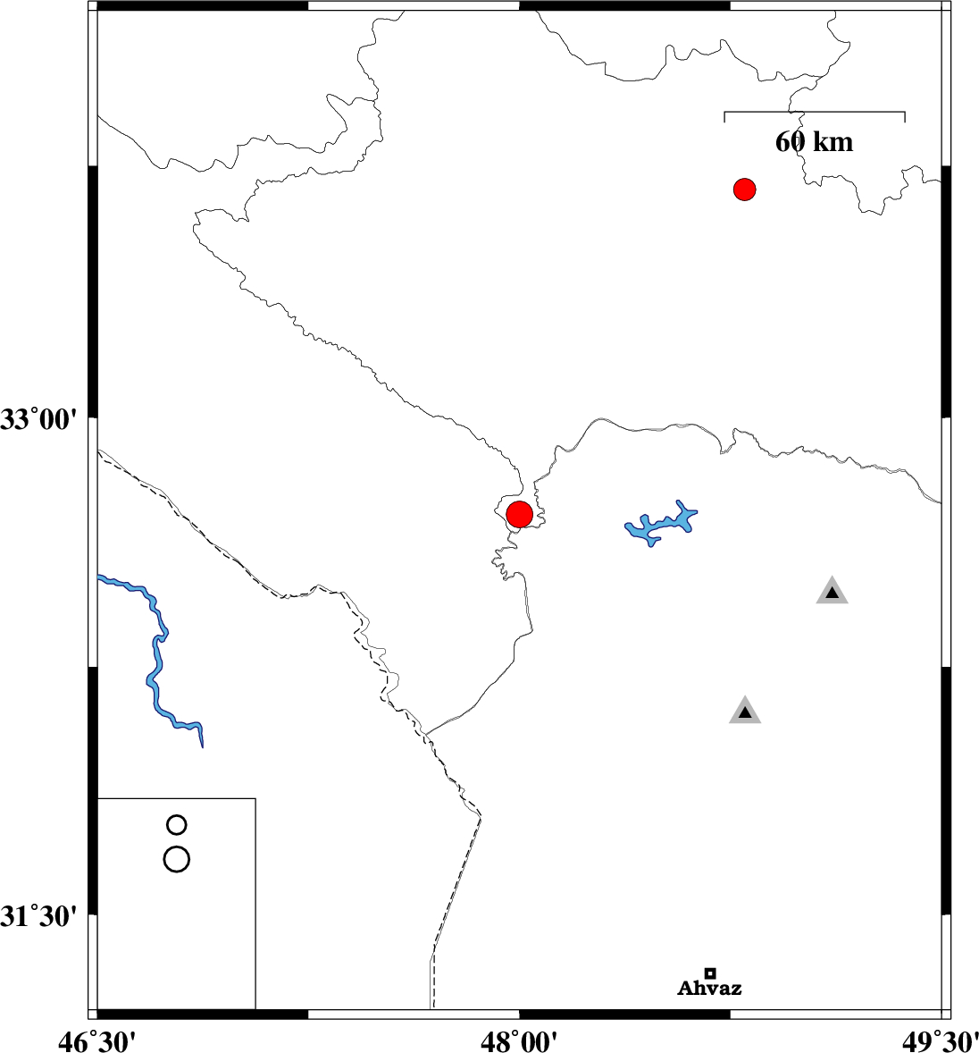 | 2009/04/07 | 17:32:52.5 | 22:02:52.5 | 32.71 | 48 | 14 | ML:4.3 | 43 km North-West of Andimeshk, Khoozestan Province | ||