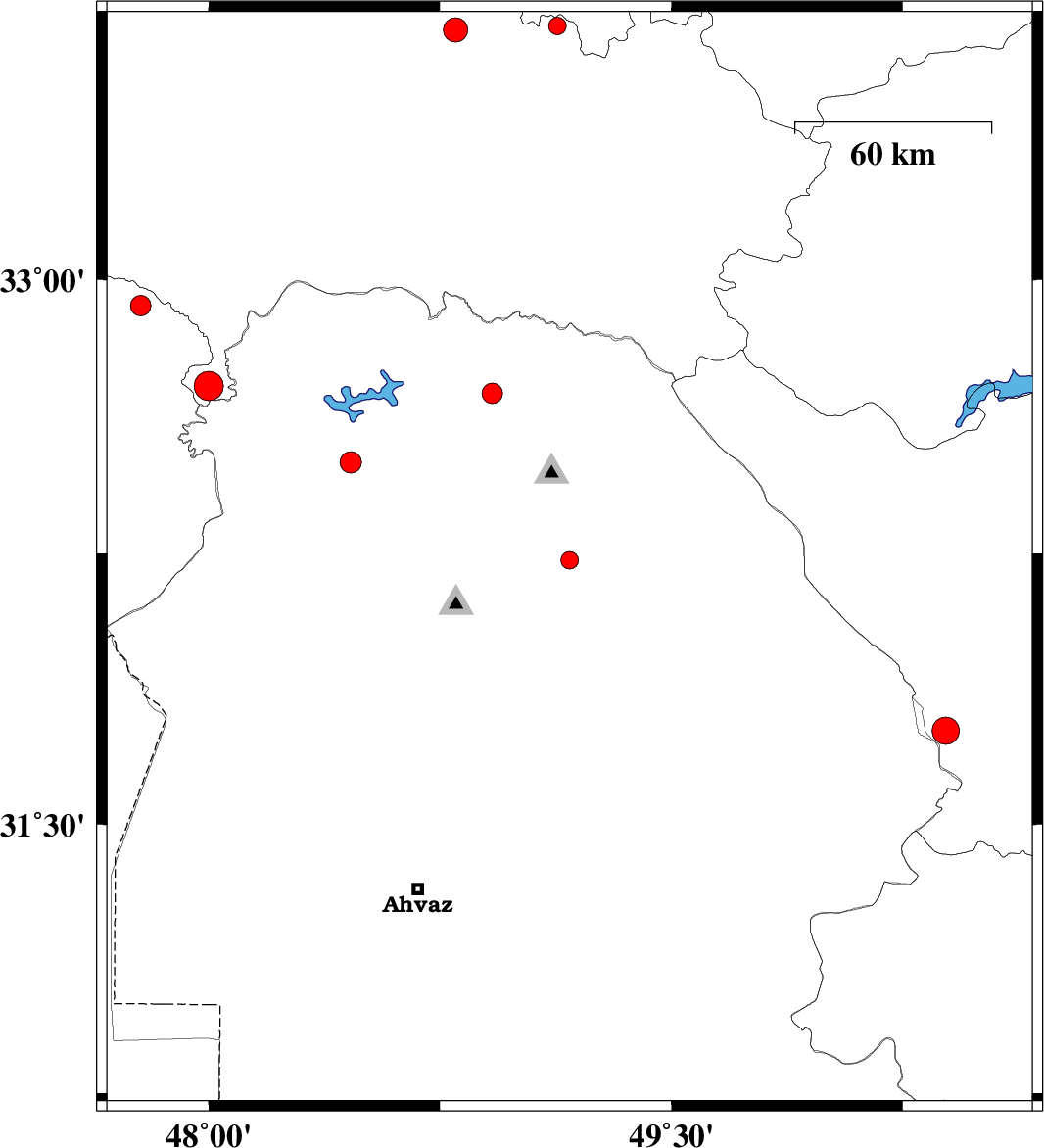 | 2009/04/07 | 17:32:52.5 | 22:02:52.5 | 32.71 | 48 | 14 | ML:4.3 | 43 km North-West of Andimeshk, Khoozestan Province | ||