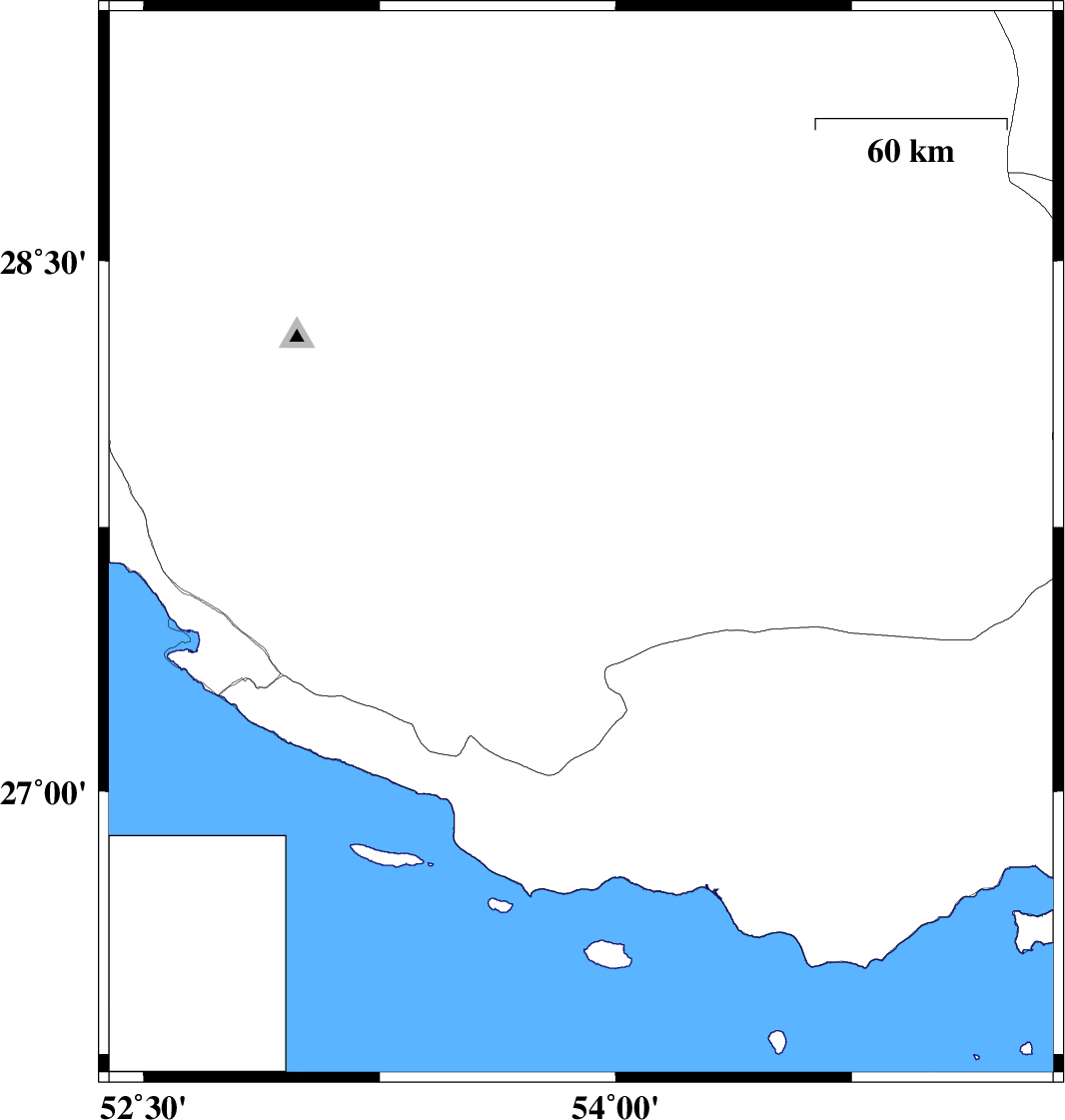 | 2009/04/14 | 18:33:42.2 | 23:03:42.2 | 27.7 | 53.89 | 15 | ML:3.3 | 44 km West of Lar, Fars Province |