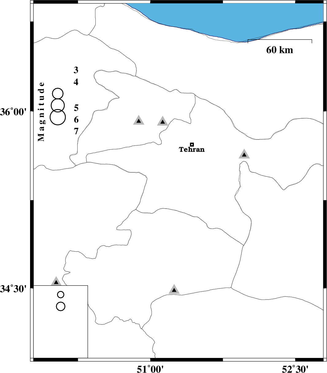 | 2009/04/15 | 07:57:42.0 | 12:27:42.0 | 35.4 | 51.29 | 41 | ML:3.1 | 19 km South of Eslamshahr, Tehran Province |