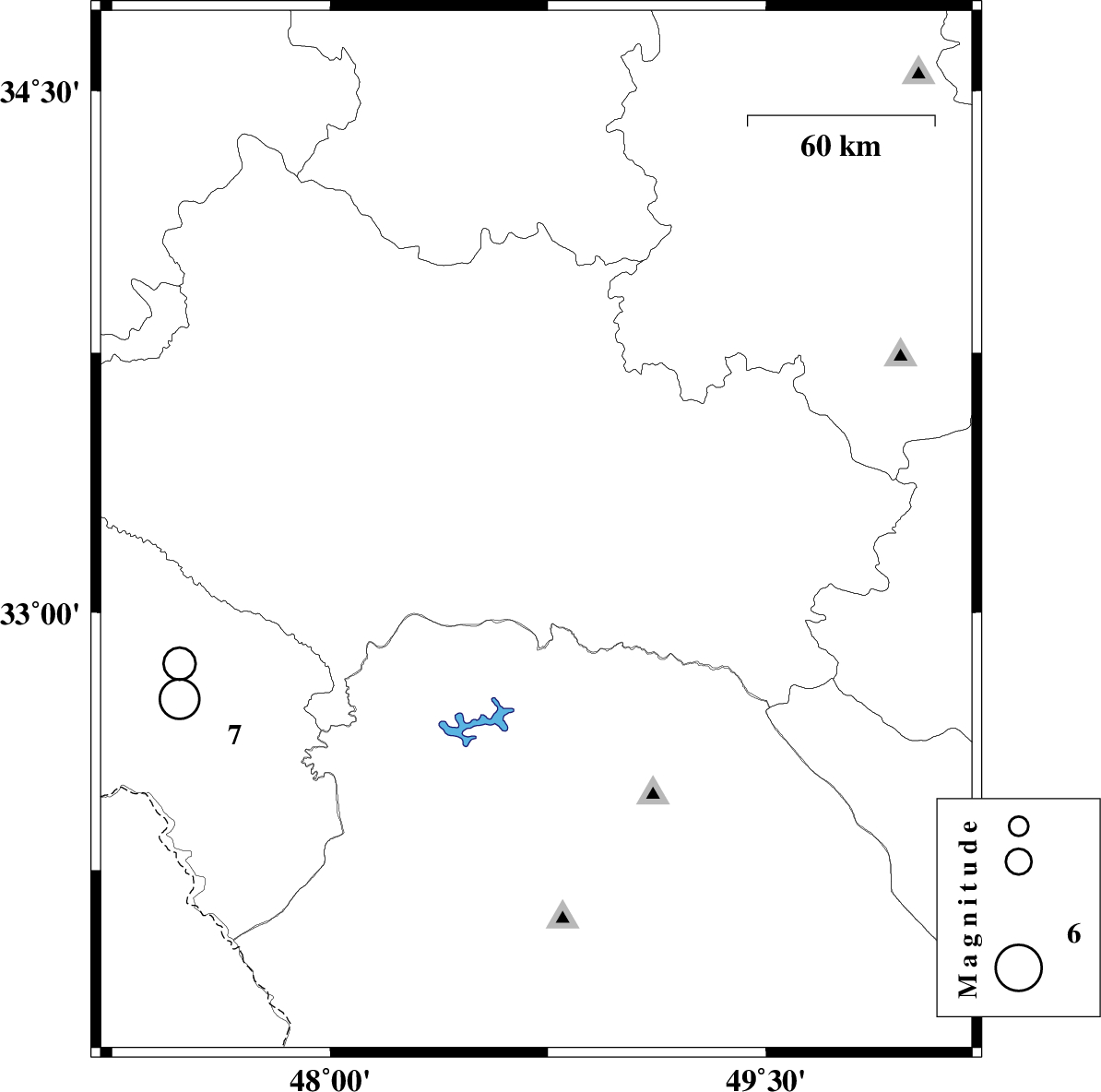 | 2009/04/24 | 13:33:05.1 | 18:03:05.1 | 32.58 | 48.21 | 30 | ML:3.2 | 18 km North-West of Andimeshk, Khoozestan Province |