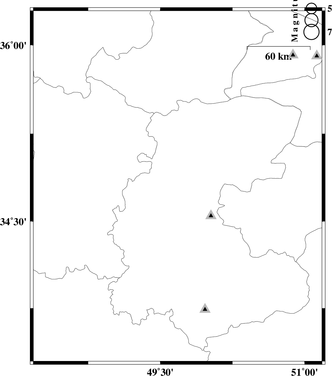 | 2009/05/15 | 03:08:11.6 | 07:38:11.6 | 34.79 | 49.68 | 46 | ML:2.8 | 33 km West of Tafresh, Markazi Province |