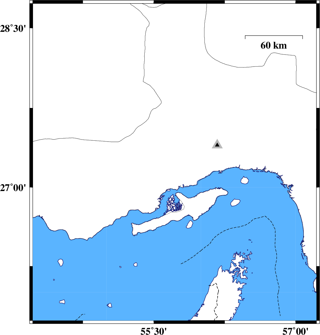| 2009/05/12 | 01:19:17.5 | 05:49:17.5 | 27.57 | 56.18 | 14 | ML:2.6 | 43 km North-West of Bandar-e abbas, Hormozgan Province |