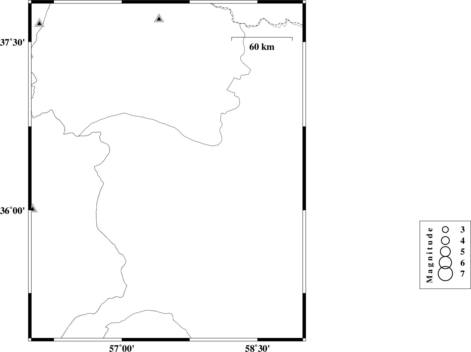 | 2009/06/10 | 18:59:52.7 | 23:29:52.7 | 36.34 | 57.5 | 15 | ML:2.7 | 21 km North-West of Sabzevar, Khorasan(center) Province |