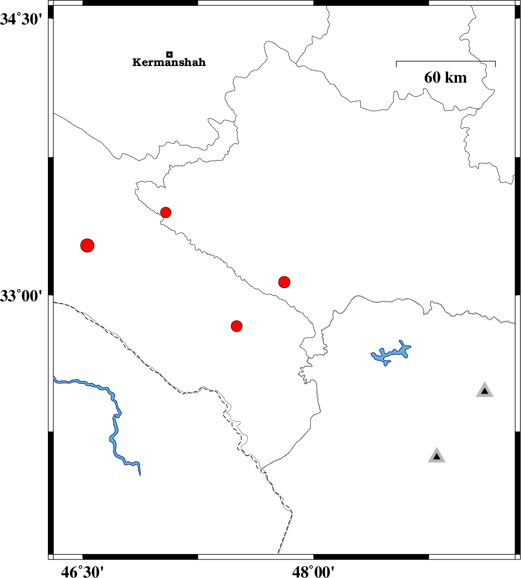 2009/06/24 | 14:39:07.6 | 19:09:07.6 | 33.45 | 47.04 | 14 | ML:3.1 | 43 km North-West of Darreh Shahr, Ilam Province |