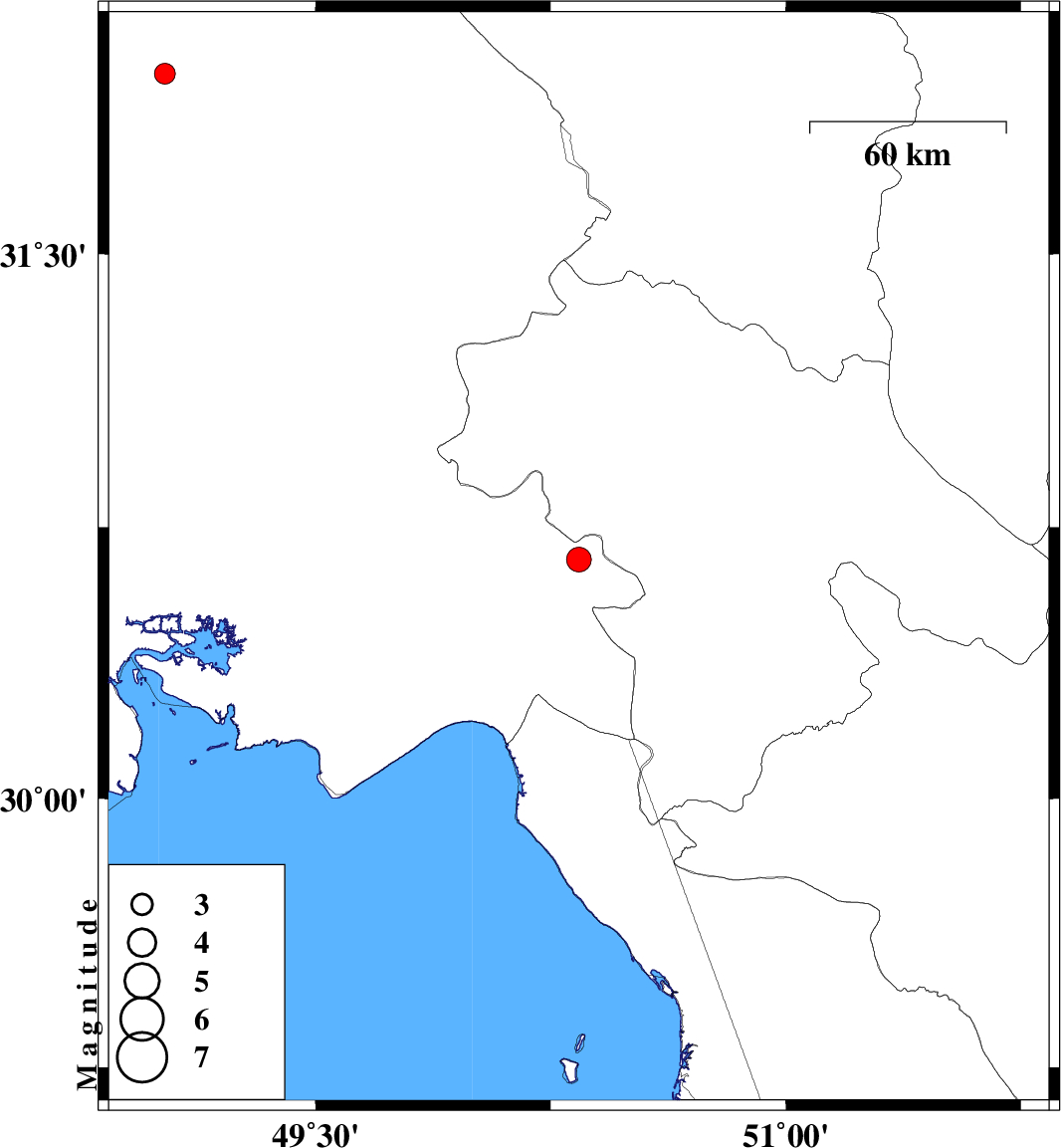 2010/01/04 | 17:37:06.2 | 21:07:06.2 | 31.99 | 49.02 | 14 | ML:3 | 16 km East of Shushtar, Khoozestan Province |