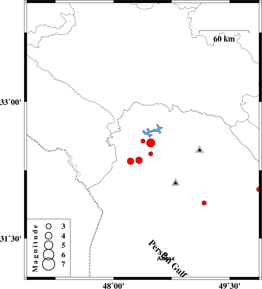 | 2010/01/16 | 20:23:38.9 | 23:53:38.9 | 32.55 | 48.48 | 18 | ML:4.9 | 15 km East of Andimeshk, Khoozestan Province | ||