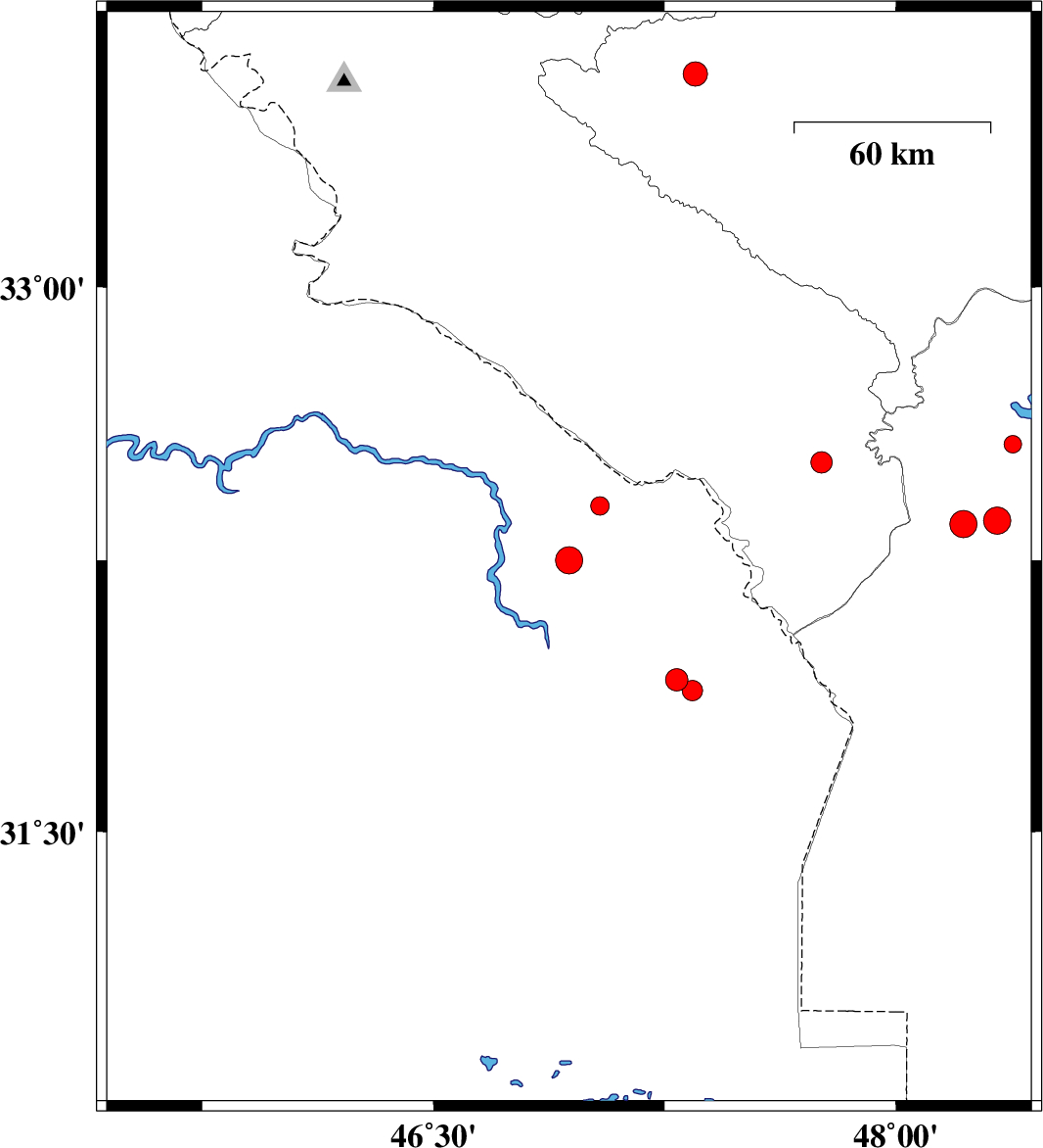 2009/12/31 | 04:27:41.9 | 07:57:41.9 | 31.89 | 47.34 | 37 | ML:3 | Iraq, 90 km South of Dehloran | ||