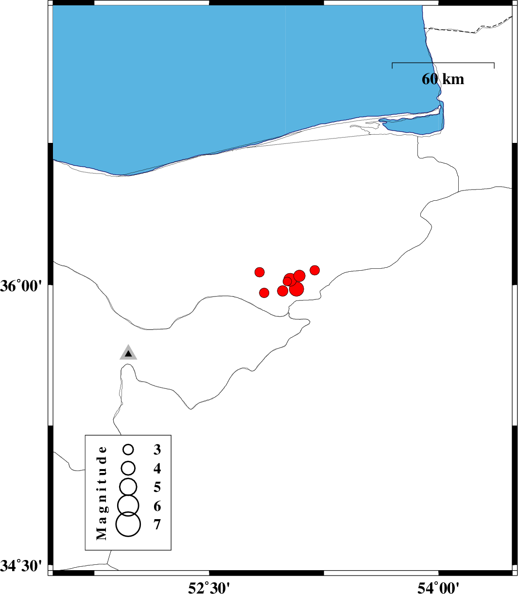 2010/01/20 | 17:37:30.1 | 21:07:30.1 | 35.94 | 52.88 | 6 | ML:3.4 | 23 km North-East of Firuzkuh, Tehran Province | ||