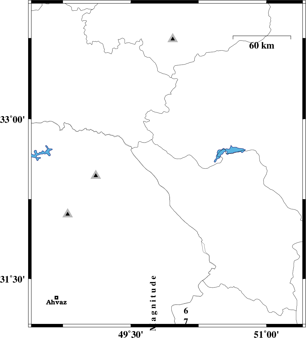 2010/01/30 | 11:56:46.3 | 15:26:46.3 | 31.08 | 49.4 | 37 | ML:3.3 | 29 km South-West of Ramhormoz, Khoozestan Province | ||