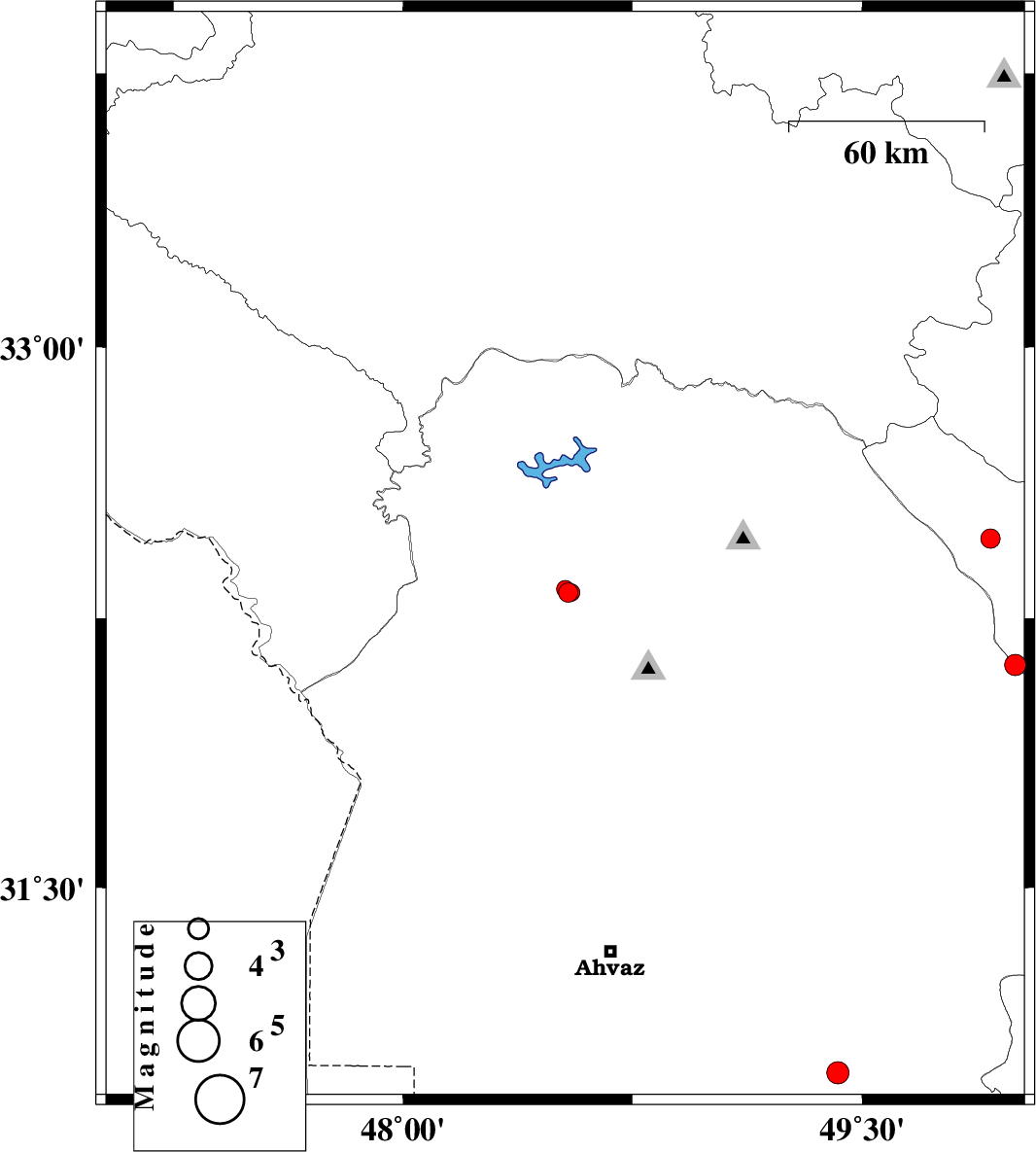 2010/01/30 | 11:56:46.3 | 15:26:46.3 | 31.08 | 49.4 | 37 | ML:3.3 | 29 km South-West of Ramhormoz, Khoozestan Province | ||