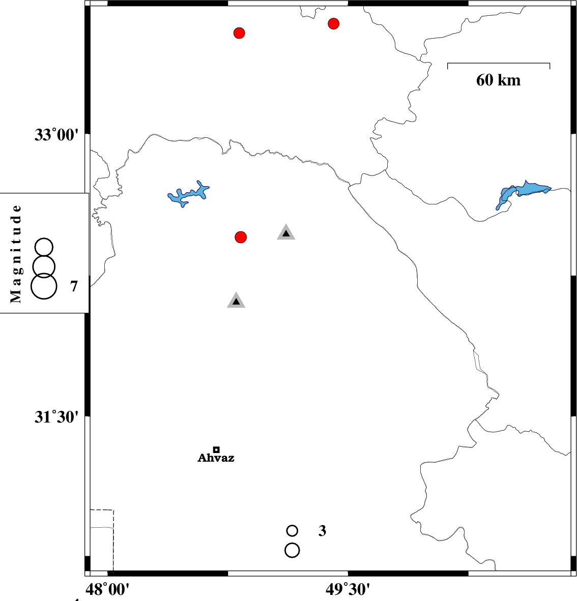 2010/01/30 | 11:56:46.3 | 15:26:46.3 | 31.08 | 49.4 | 37 | ML:3.3 | 29 km South-West of Ramhormoz, Khoozestan Province | ||